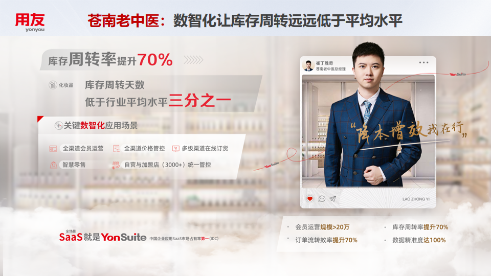 用友YonSuite,作为中国世界级的公有云数智化应用与创新平台,正以其全面覆盖企业经营管理场景的能力,助力企业实现这一转型。 今天,“创新企业选YonSuite”正成为数智化及SaaS产业的新潮流! 三大标准,成就数智企业 ▋ 业务敏捷:快速响应市场变化 业务敏捷性是数智企业的第一标准,它要求企业能够迅速捕捉市场信息,灵活调整经营策略。 用友YonSuite的全场景数字营销解决方案,通过其先进的数智化技术和创新的全渠道管理能力,助力企业实现线上线下一体化营销战略。YonSuite提供了一站式的会员运营工具,通过数据驱动,帮助企业更好地理解和满足客户需求,提升客户忠诚度,优化销售流程、提升工作效率,从而在激烈的市场竞争中保持领先地位。 YonSuite的敏捷供应链管理系统,支持企业快速响应市场变化,实现高效的库存管理、物流配送和订单处理。还提供了全渠道销售管理和分析功能,帮助企业实时掌握市场动态,优化销售策略。 借助YonSuite的角色工作台和零代码开发平台,企业可以为不同角色的员工提供个性化的业务办公桌面,满足企业内部的个性化需求。这种高度灵活的配置方式,使得企业能够迅速适应市场变化,提升工作效率和协同能力。 用友YonSuite以其全场景营销、全渠道管控、线上线下一体化、会员运营和敏捷供应链管理等核心能力,为企业提供了一个全面、高效的数字化营销解决方案。 ▋ 精益管理:优化资源配置 精益管理是数智企业的第二标准,它强调通过精细化管理降低浪费、提升效率。 在数智化时代,企业的财务管理正在经历一场深刻的变革。一体化全场景的智能财务,不仅能够覆盖企业所有的财务活动,更能通过事项法会计的方式,实现财务信息的实时、动态记录与分析。这种新型的财务管理模式,使得企业可以更加精准地掌握自身的财务状况,进而做出更为明智的决策。多维、实时、精细的数据驱动和分析,使得财务数据不再是一潭死水,而是变成了流动的信息流,为企业提供了源源不断的动力。 YonSuite的“数智飞轮”场景化应用方案和“角色工作台”人机交互方式也正是这一变革的杰出代表。它们不仅打破了传统ERP系统的局限,实现了业务和财务数据的无缝对接,更通过AI辅助决策的功能,使得企业能够在复杂多变的市场环境中迅速找到最佳路径。这种智能化的管理方式,不仅提升了企业的运营效率,更为企业创造了巨大的价值。 随着数智化时代的深入发展,数据驱动、智能运营将成为企业不可或缺的核心竞争力。成长型企业通过YonSuite的一体化全场景SaaS服务,能够更好地应对市场的挑战,实现持续的创新和发展。 ▋ 全球运营:拓展国际视野 全球运营是数智企业的第三标准,它要求企业具备全球竞争力。 用友YonSuite不仅支持全球化运营,还针对跨国企业的需求,提供了多语言、多时区、多数据格式以及多币种支持等功能,确保企业能够轻松应对全球市场的多样性。这种全面的国际化支持使得企业无论身处何地,都能够保持业务的高效运转,与全球各地的客户和合作伙伴进行无障碍沟通。 用友YonSuite也高度重视全球运营中的安全合规问题。为了满足不同国家和地区的法律法规要求,如欧盟的隐私协议等,YonSuite提供了严格的数据保护措施,确保企业数据的安全与合规。 用友YonSuite还通过用友全球化战略,提供了本地化服务支持,为企业在海外市场的拓展提供有力的后盾。海外数据中心的设立,更是进一步保障了企业在全球范围内的数据稳定性和可靠性。 对于成长型企业来说,用友YonSuite不仅是一个经营与管理平台,更是一个能够帮助企业构建全球一体化运营体系的强大工具。它能够帮助企业实现资源的优化配置,提升企业的全球竞争力,为企业的长期发展奠定坚实的基础。 四大行业,成就数智企业 用友YonSuite作为企业数智化转型的得力助手,为消费、服务、医药流通和制造四大行业提供了强大的技术支撑和综合服务。它通过集成的云服务架构,强化了企业数据处理和分析能力,优化了供应链管理,提升了运营效率,并支持了商业模式的创新。YonSuite的灵活定制性和行业深耕,使得各个行业的企业都能够根据自身特点,实现从产品开发到市场策略的全面数字化升级,构建起面向未来的数智化竞争力。 在中国消费行业,数智化技术正推动行业转型。用友YonSuite作为转型的催化剂,助力企业从“以产品为中心”转向“以消费者为中心”。 在零售业,YonSuite的大数据分析能力帮助零售商提供个性化推荐和智能供应链管理,如上海香淼在香氛行业针对零售门店实现了高效配送。在餐饮业,YonSuite通过智能菜单设计和动态定价,提升菜品吸引力和收益。在电子商务领域,YonSuite的数据分析和AI技术提供定制化服务和增强现实体验,增强购物便捷性和趣味性。酒饮行业则运用YonSuite来解析消费者口味偏好,打造定制化的酒类产品及智能库存管理,优化饮酒体验并提升市场竞争力。 用友YonSuite通过先进的数智化技术帮助企业快速捕捉市场趋势和消费者需求变化,满足消费者个性化需求,提高市场响应速度和运营效率,助力中国消费行业实现数智化转型,迎接更加智能化、个性化的新时代。 服务业在数智化转型的浪潮中,正逐步释放巨大潜力。用友YonSuite作为行业的重要推动者,通过数智化手段重塑服务流程,显著提升效率。其“角色工作台”等创新功能,使服务