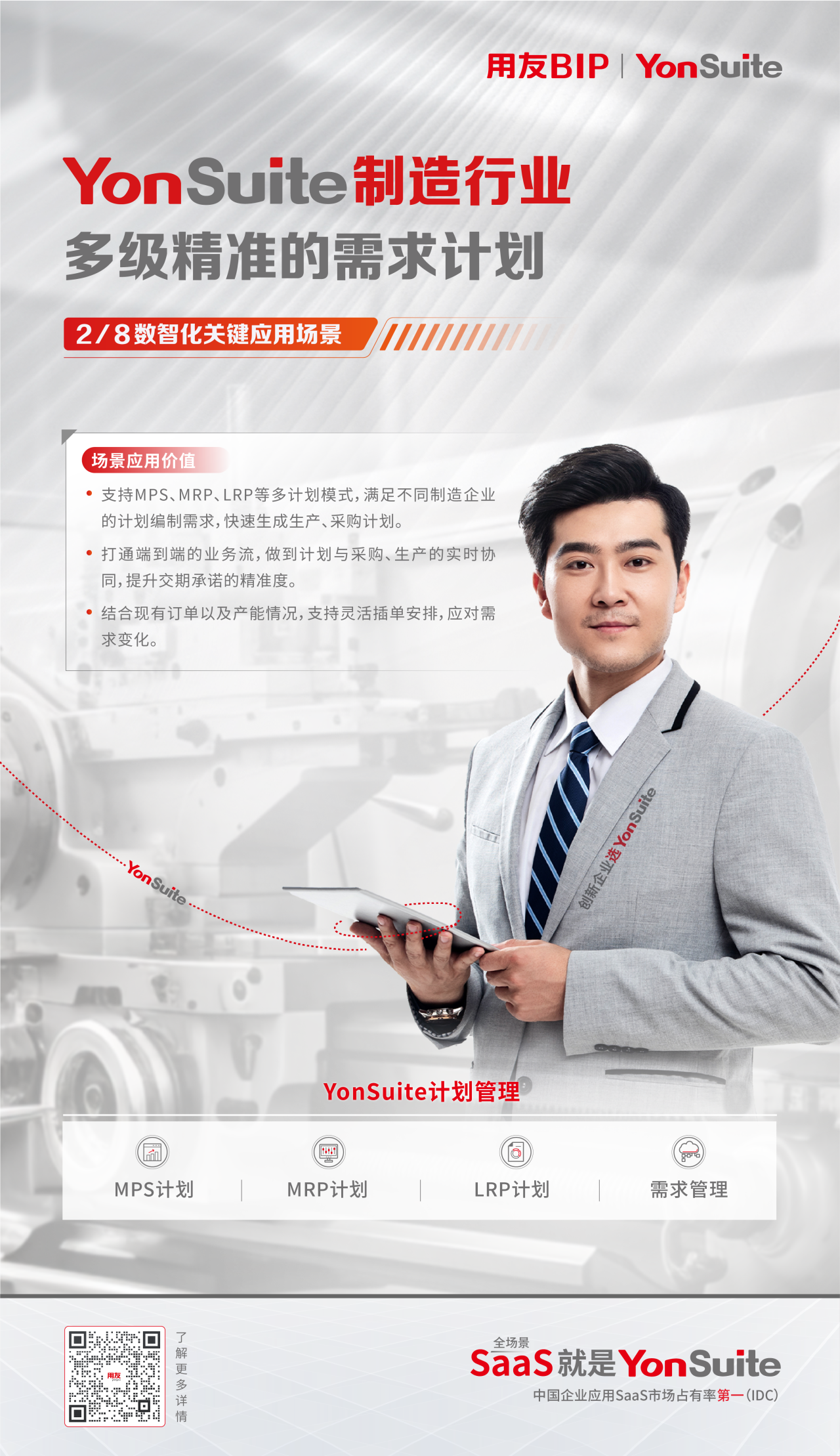 走进萨震 全球节能空压机开创者 市场为先,高效节能 萨震压缩机(上海)有限公司(简称:萨震) 集研发、制造、营销、服务于一体 是全球节能空压机开创者 是上海高新技术及专新特精企业 拥有国家级能效实验室 产品全线超越国家1级能效标准 行业首家获得“能效之星”的品牌 证书编号001 如此优秀的企业 它的成长密码是什么? 锁定5月7日 一同听听萨震的故事! 精益管理 智能制造 YonSuite为萨震前行保驾护航 在制造业数智化改革浪潮中 萨震抓住机遇、乘势而上 借助用友YonSuite 全面提高了企业的管理水平提升 在制造领域 YonSuite如何助力制造企业数智化运营? 01 萨震为按单生产型生产企业 需满足面向销售订单的生产模式 根据接到的销售订单作为需求来源 变更多,改制多,计划调整幅度大 如何实现边设计边生产? YonSuite支持产品个性化随需选配 让柔性生产不再是难题! 02 萨震会以客户订单为单位 进行生产计划与采购计划的编制 通过MRP运算后 自动生成生产及采购的计划工单 后续可进行生产及采购计划执行状况的跟踪 YonSuite支持多种需求计划模式 满足不同制造企业的计划编制需求 03 节能空压机的BOM层级复杂 原料种类繁多 在产品标准化程度低的情况下 优化替代料管理显得尤为重要 YonSuite支持优化替代料管理 提供了全面而灵活的替代料管理解决方案 04 萨震的组织特点是单组织生产类企业 未来可能存在多组织 国内外产销一体 海外业务产销分离 YonSuite支持多种生产组织模式 企业可根据产品战略 灵活选择不同的模式及组合 05 作为专注于节能空压机制造的企业 萨震深知物料齐套 是保证生产连续性和产品质量的基础 是提升客户满意度的关键一环 YonSuite支持物料齐套分析及精准备料 还支持车间领用、仓库配送等 多种方式和路径 实现物料的精准配送 06 为了实现资源的优化配置和成本的降低 委外业务是许多制造企业的选择 萨震也不例外 对于制造企业来说 如何避免委外数据不清晰 费用管理混乱、质量管控不规范等问题? YonSuite支持精细化自制与委外管理 充分利用自有和委外产能 提升交付能力 07 萨震的服务理念是 永远比客户期待的要好 打造及时专业愉悦的服务态度 一切以超越客户需求为使命,为结果负责 因此他们对质量管控十分严格 包括来料检验、发退货检验、产品检验等 YonSuite支持全链路质量管控 提供多种质量分析报表 帮助企业提升产品质量和客户满意度 除了上面的应用场景,萨震也借助用友YonSuite在财务、供应链、费控、税务服务等方面不断优化资源利用效率和生产效率。 为了让您能够更清晰了解数智化技术为企业经营带来效益提升,诚挚邀请您出席“探访萨震 用友YonSuite制造业数智化转型体验会暨中国工博会助力数字化转型系列活动”, 见证制造企业高效增长的数智力量!