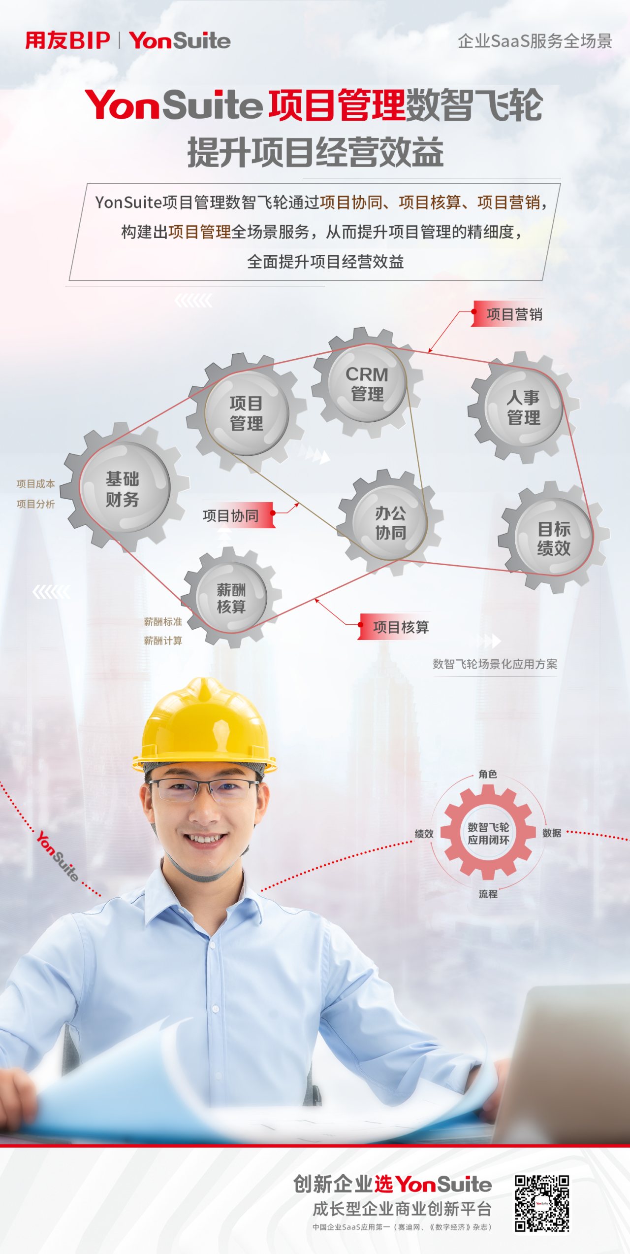 YonSuite的项目管理数智飞轮,通过项目协同、核算、营销等功能,为服务行业项目管理提供了全方位的服务,大幅提升了项目管理的精细度,进而全面提升了项目的经营效益。