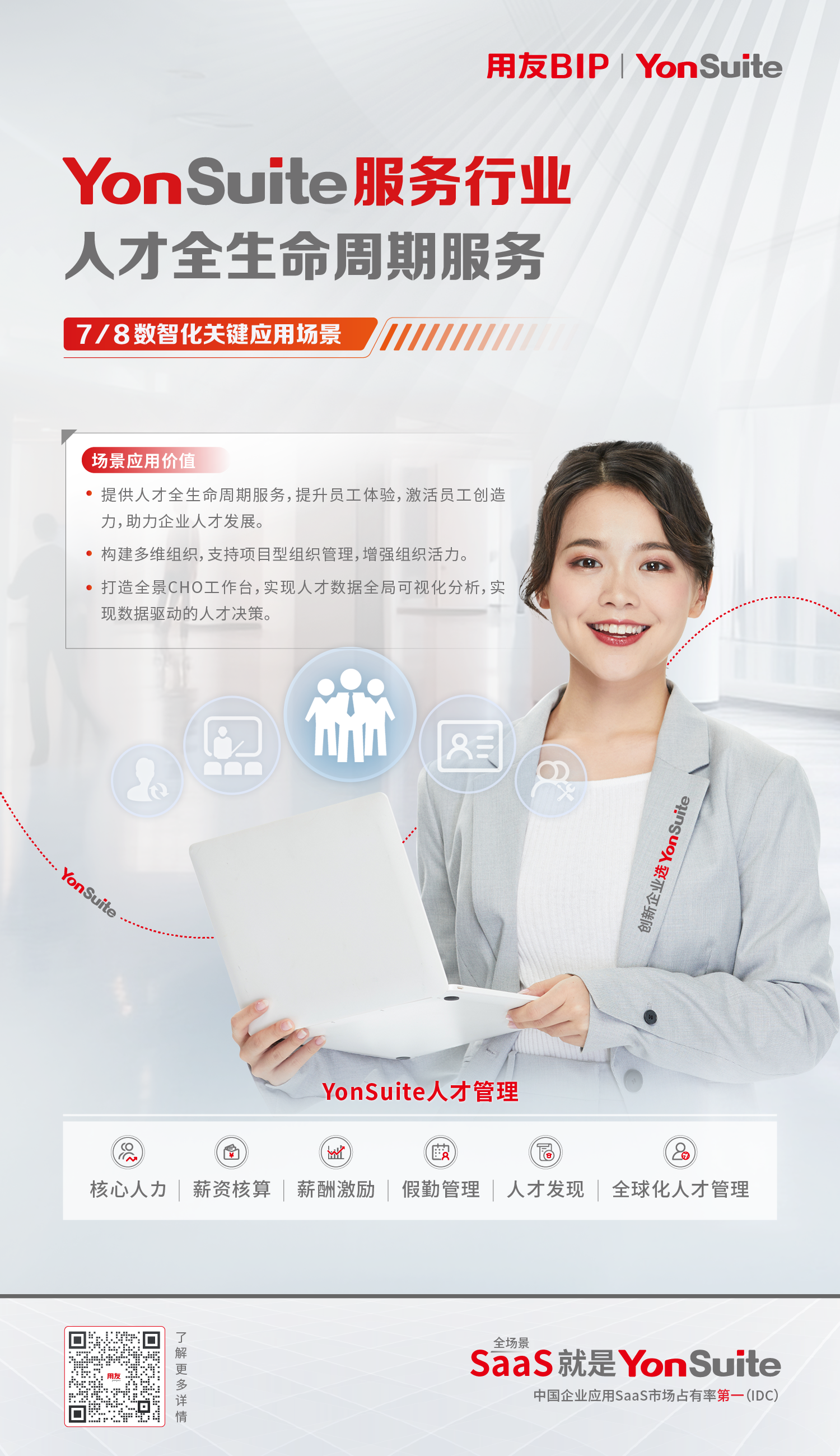 面对市场的多元挑战,用友YonSuite以全面且深入的解决方案,积极助推服务业企业的数智化转型,致力于帮助企业构建智能化组织,实现全流程、精细化管理,从而在提升服务质量与管理效率的同时,推动企业迈向更加高效稳健的发展道路。