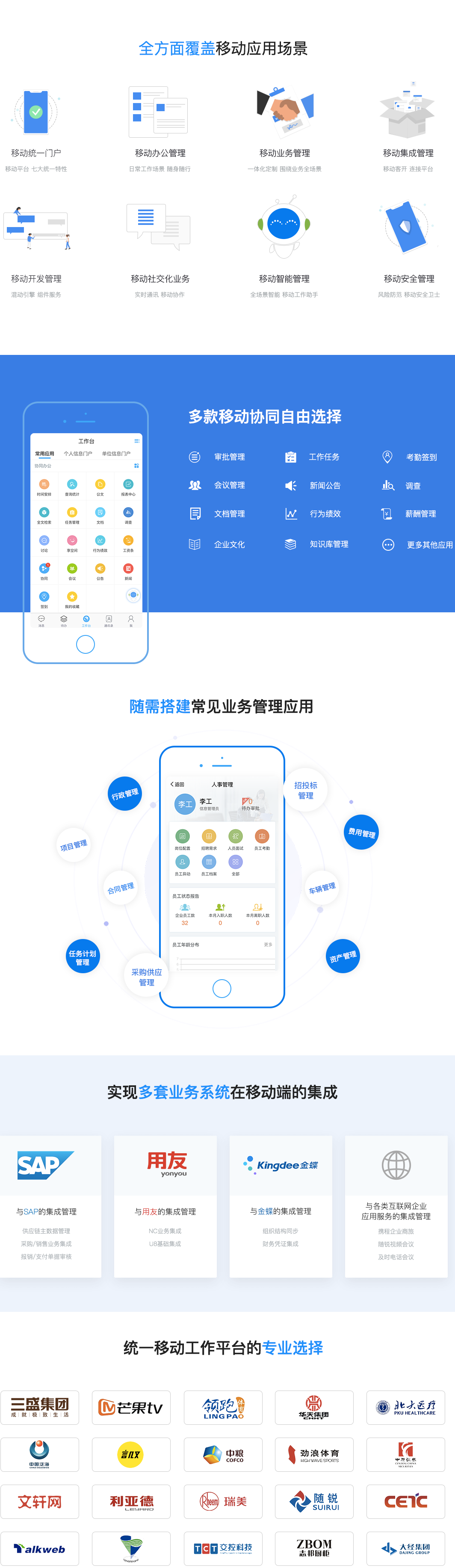 M3采用业内领先的Html5移动开发技术,支持iPhone、iPad、Android智能终端,在安全、性能、网络流量等方面都进行了全面设计和深入优化,同时获得2项国家技术专利